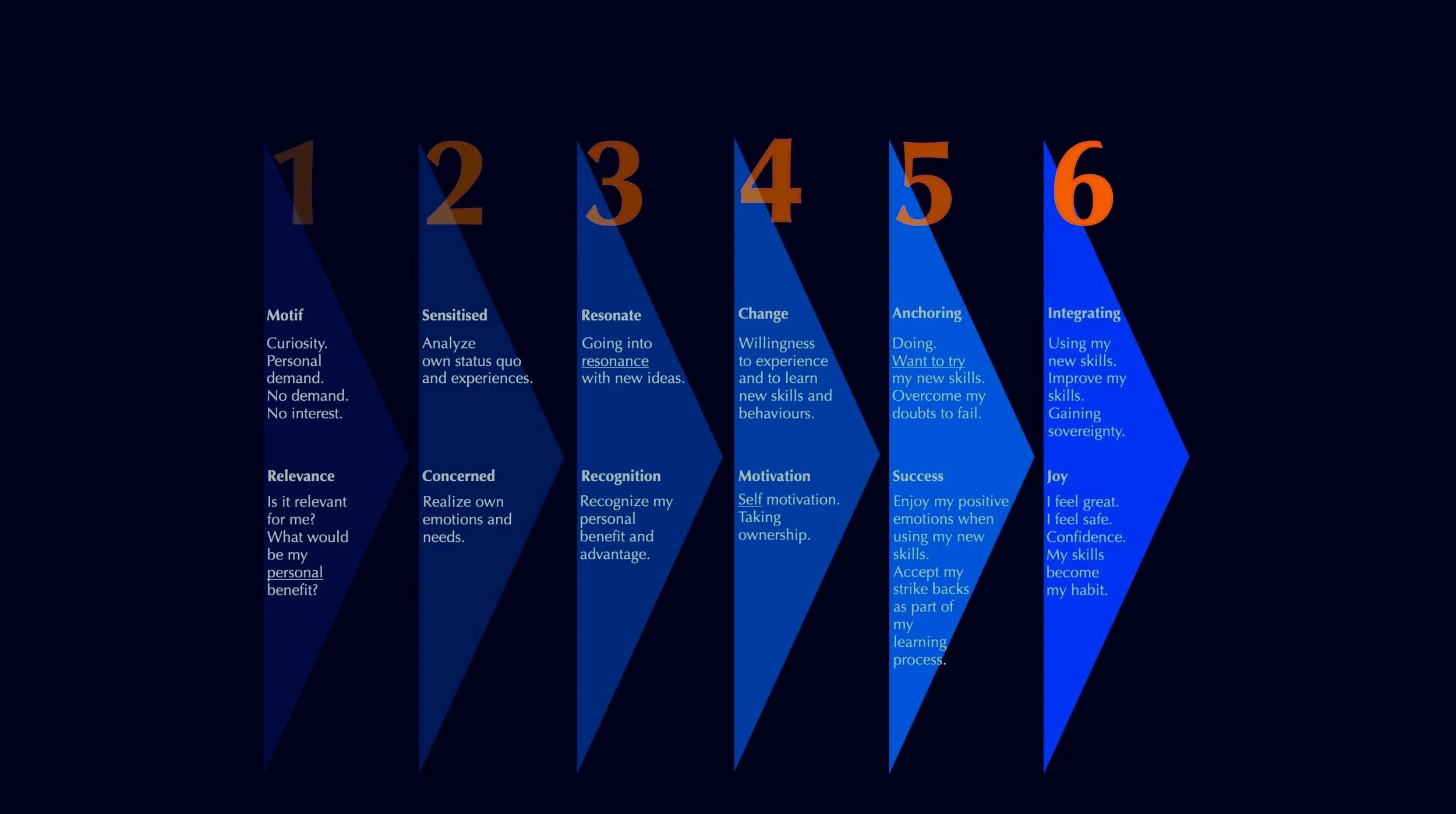 This learning cycle concept is based on six successive phases and their reactions in the learner.